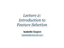Lecture 2 Introduction to Feature Selection Isabelle Guyon