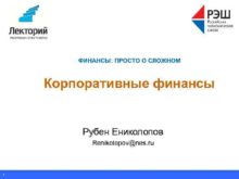 ФИНАНСЫ ПРОСТО О СЛОЖНОМ Корпоративные финансы Рубен Ениколопов