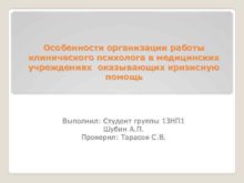 Особенности организации работы клинического психолога в медицинских учреждениях