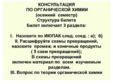 КОНСУЛЬТАЦИЯ ПО ОРГАНИЧЕСКОЙ ХИМИИ осенний семестр Структура билета