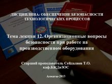 ДИСЦИПЛИНА ОБЕСПЕЧЕНИЕ БЕЗОПАСНОСТИ ТЕХНОЛОГИЧЕСКИХ ПРОЦЕССОВ Тема лекции 12