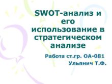 SWOT-анализ и его использование в стратегическом анализе Работа