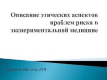 Описание этических аспектов проблем риска в экспериментальной медицине