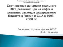 Петрозаводский государственный университет Экономический факультет Соотношение динамики реального