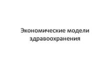 Экономические модели здравоохранения Экономические модели здравоохранения Здоровье