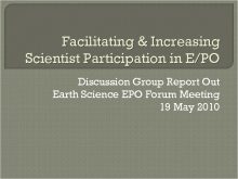Facilitating Increasing Scientist Participation in E PO Discussion