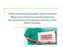 Проблема коммерциализации трансплантации Морально-этические основания запрета на осуществление