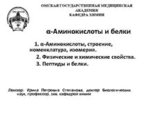ОМСКАЯ ГОСУДАРСТВЕННАЯ МЕДИЦИНСКАЯ АКАДЕМИЯ КАФЕДРА ХИМИИ α-Аминокислоты и