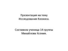 Презентация на тему Исследования Космоса Составила ученица 14