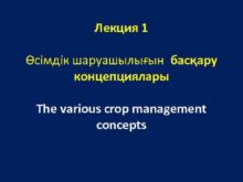 Лекция 1 Өсімдік шаруашылығын басқару концепциялары The various