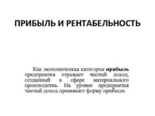 ПРИБЫЛЬ И РЕНТАБЕЛЬНОСТЬ Как экономическая категория прибыль предприятия