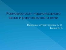 Разновидности национального языка и разновидности речи Выполнил студент