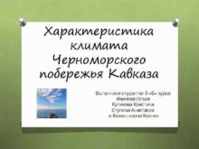 Характеристика климата Черноморского побережья Кавказа Выполнили студентки 3