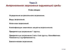 Тема 2 Антропогенное загрязнение окружающей среды План лекции