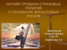ОНЛАЙН ПРОДАЖИ СТРАХОВЫХ ПОЛИСОВ СТРАХОВАНИЕ ФИНАНСОВЫХ РИСКОВ Выполнила