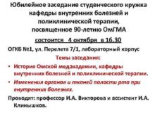 Юбилейное заседание студенческого кружка кафедры внутренних болезней и