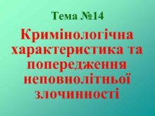 Тема 14 Кримінологічна характеристика та попередження неповнолітньої