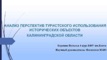 АНАЛИЗ ПЕРСПЕКТИВ ТУРИСТСКОГО ИСПОЛЬЗОВАНИЯ ИСТОРИЧЕСКИХ ОБЪЕКТОВ КАЛИНИНГРАДСКОЙ ОБЛАСТИ