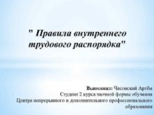 Правила внутреннего трудового распорядка Выполнил Часовский Артём