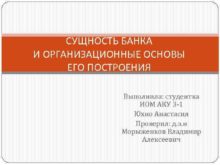 СУЩНОСТЬ БАНКА И ОРГАНИЗАЦИОННЫЕ ОСНОВЫ ЕГО ПОСТРОЕНИЯ Выполнила