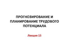 ПРОГНОЗИРОВАНИЕ И ПЛАНИРОВАНИЕ ТРУДОВОГО ПОТЕНЦИАЛА Лекция 15