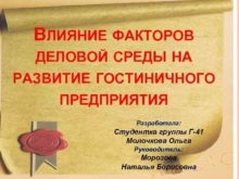 ВЛИЯНИЕ ФАКТОРОВ ДЕЛОВОЙ СРЕДЫ НА РАЗВИТИЕ ГОСТИНИЧНОГО ПРЕДПРИЯТИЯ