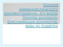 ПОНЯТИЕ КРИМИНАЛИСТИЧЕСКОГО ДОКУМЕНТОВЕДЕНИЯ ЕГО ВИДОВ ПОНЯТИЕ ДОКУМЕНТА КЛАССИФИКАЦИЯ