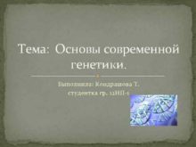 Тема Основы современной генетики Выполнила Кондрашова Т студентка
