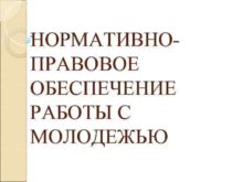 НОРМАТИВНОПРАВОВОЕ ОБЕСПЕЧЕНИЕ РАБОТЫ С МОЛОДЕЖЬЮ Общая законодательная