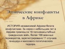 Этнические конфликты в Африке ИСТОРИЯ независимой Африки богата