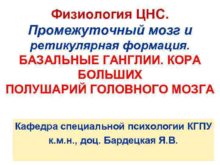 Физиология ЦНС Промежуточный мозг и ретикулярная формация БАЗАЛЬНЫЕ