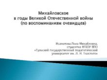 Михайловское в годы Великой Отечественной войны по воспоминаниям