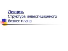 Лекция Структура инвестиционного бизнес плана Инвестиционное бизнес-планирование