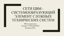 CЕТИ ЦВМ СИСТЕМООБРАЗУЮЩИЙ ЭЛЕМЕНТ СЛОЖНЫХ ТЕХНИЧЕСКИХ СИСТЕМ Работу
