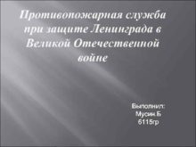 Противопожарная служба при защите Ленинграда в Великой Отечественной