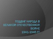 ПОДВИГ НАРОДА В ВЕЛИКОЙ ОТЕЧЕСТВЕННОЙ ВОЙНЕ 1941 -1945