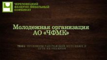 Молодежная организация АО ЧФМК ТЕМА ПРОБЛЕМЫ РАБОТАЮЩЕЙ МОЛОДЕЖИ