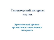 Генетический материал клетки Хромосомный уровень организации генетического материала