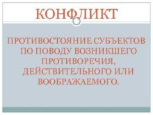 КОНФЛИКТ ПРОТИВОСТОЯНИЕ СУБЪЕКТОВ ПО ПОВОДУ ВОЗНИКШЕГО ПРОТИВОРЕЧИЯ ДЕЙСТВИТЕЛЬНОГО