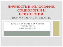 ЛИЧНОСТЬ В ФИЛОСОФИИ СОЦИОЛОГИИ И ПСИХОЛОГИИ ПСИХОЛОГИЯ ЛИЧНОСТИ