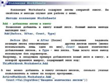 Коллекция Work Sheets Коллекция Worksheets содержит листы открытой