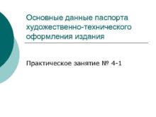 Основные данные паспорта художественно-технического оформления издания Практическое занятие