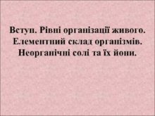 Вступ Рівні організації живого Елементний склад організмів Неорганічні