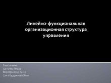 Линейно-функциональная организационная структура управления Выполнили Диниева Эльза Ферафонтова