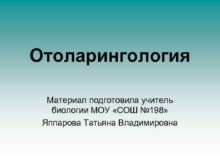 Отоларингология Материал подготовила учитель биологии МОУ СОШ