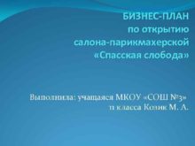 БИЗНЕС-ПЛАН по открытию салона-парикмахерской Спасская слобода Выполнила учащаяся