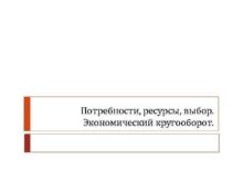 Потребности ресурсы выбор Экономический кругооборот Экономические потребности
