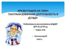 ПРЕЗЕНТАЦИЯ НА ТЕМУ ТЕАТРАЛИЗОВАННАЯ ДЕЯТЕЛЬНОСТЬ В Д САДУ Подготовила