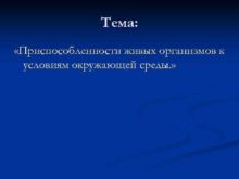 Тема Приспособленности живых организмов к условиям окружающей среды