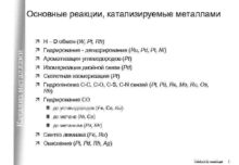 Основные реакции катализируемые металлами Катализ металлами ä H